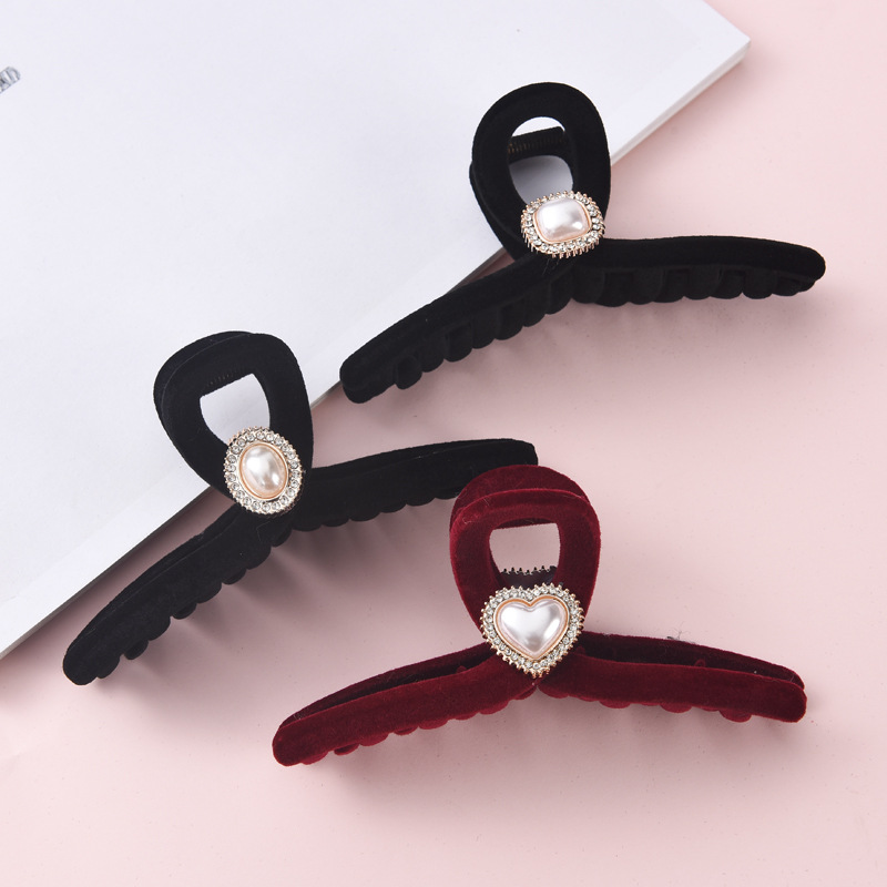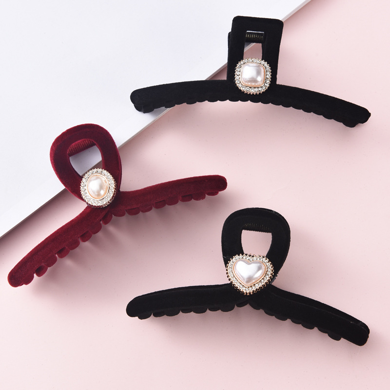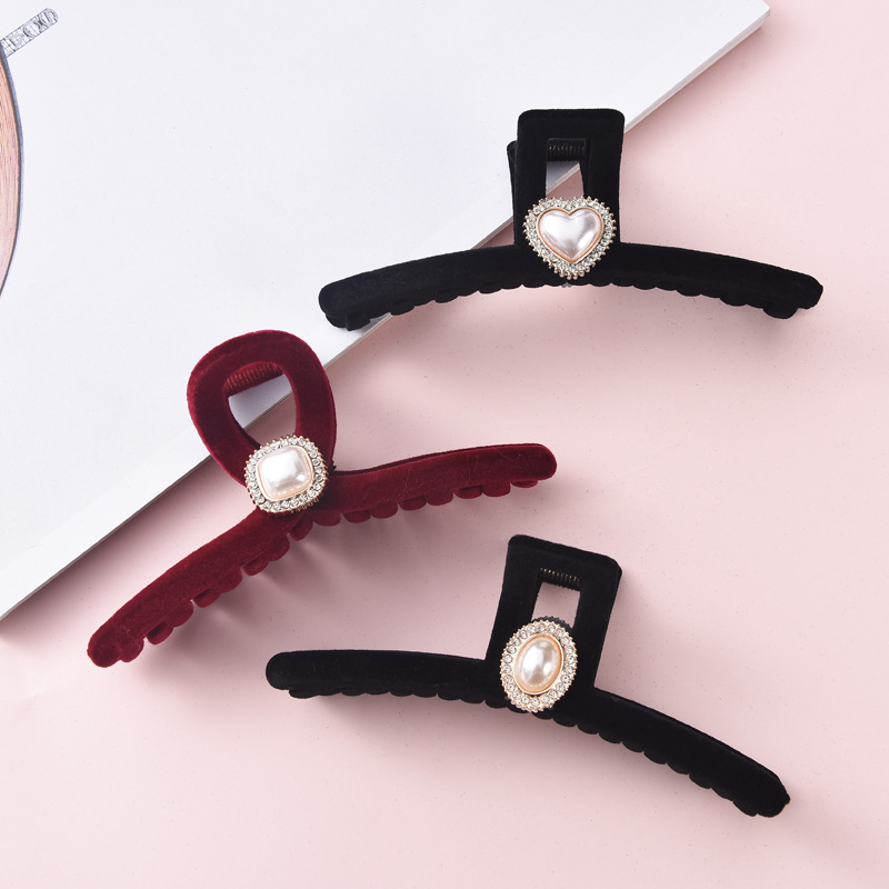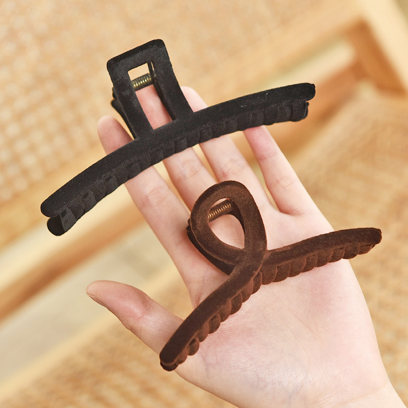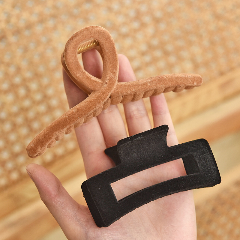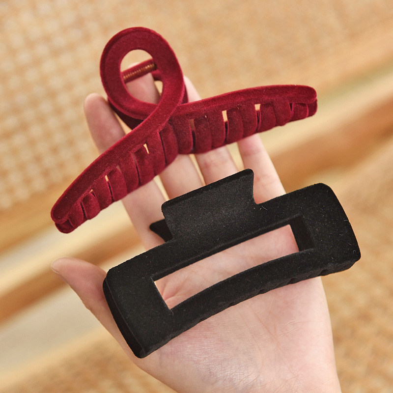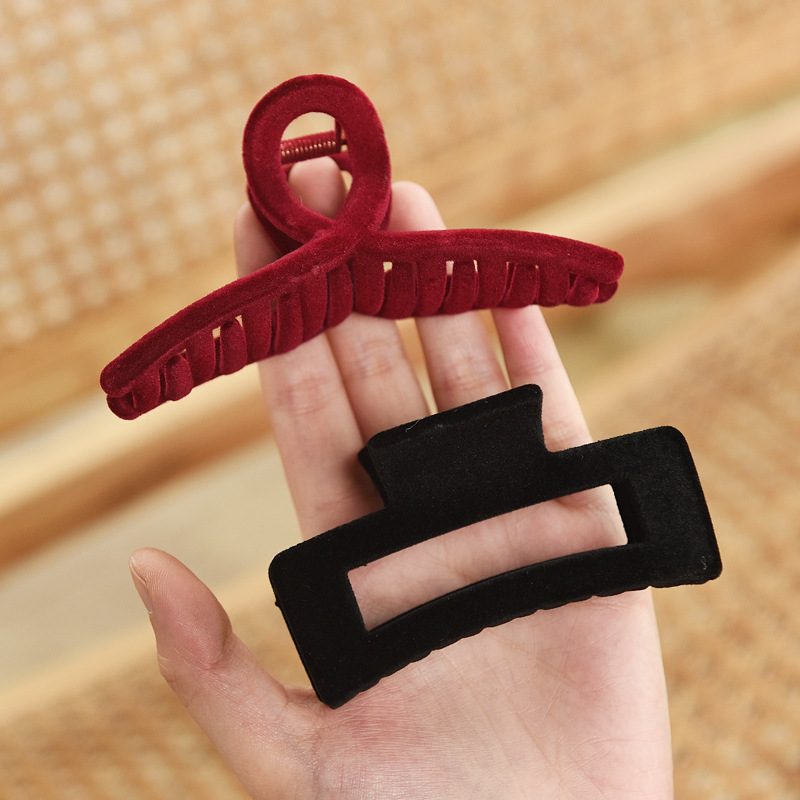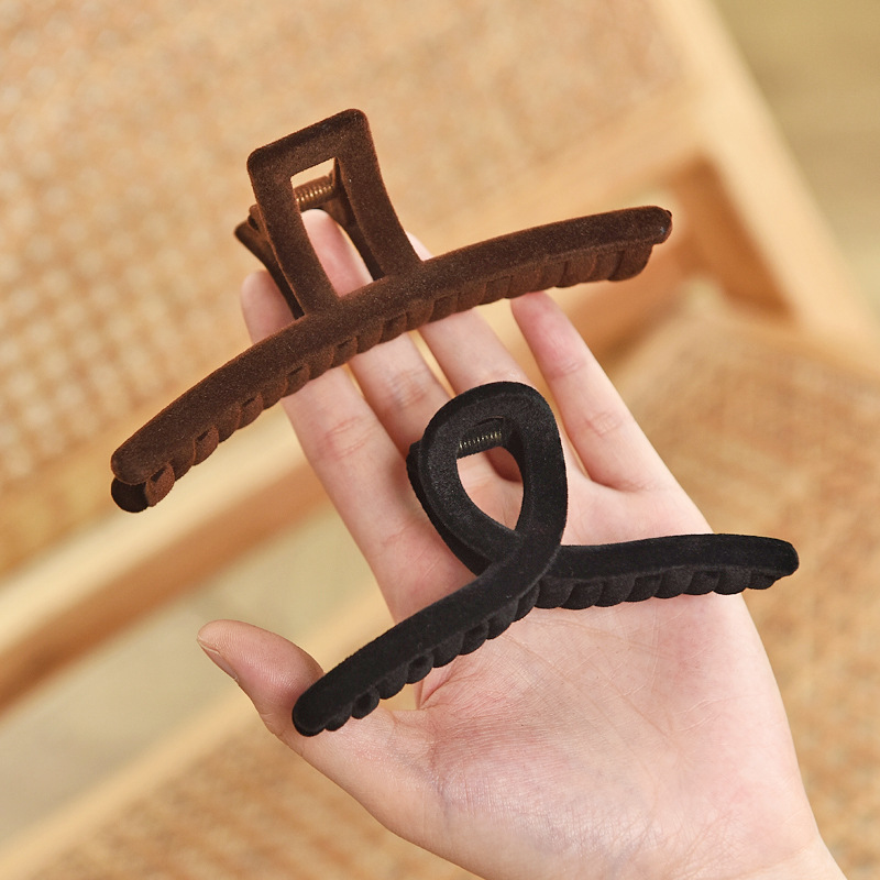French Vintage Flocking Clip Women's Fall/Winter Hair Clip Headdress Hair Clip Large Back Head Shark Clip